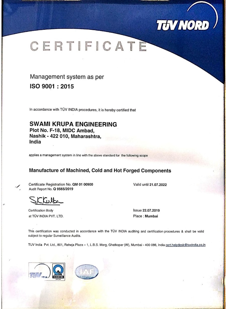 We are an ISO 9001:2015 certified company. Our staff undergoes frequent training programs in quality tools like SPC, 5S, 3M etc to enhance their skills.